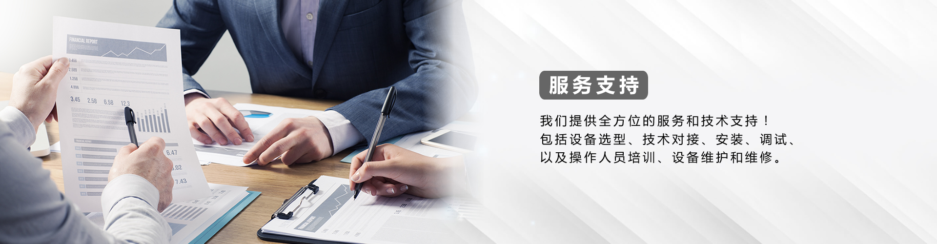 我公司提供完善的售前、售中、售后服務,從設備的選型、技術對接、安裝、調試、培訓、售后一條龍服務。